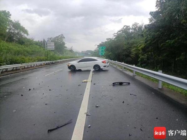 2023年8月12日13时许,一男子驾驶着一辆号牌为琼DK****的白色汽车,沿G98环岛高速公路某路段行驶。由于雨天路滑,加上该男子操作不当,车子方向瞬间偏移,一不小心撞上右侧的护栏。
