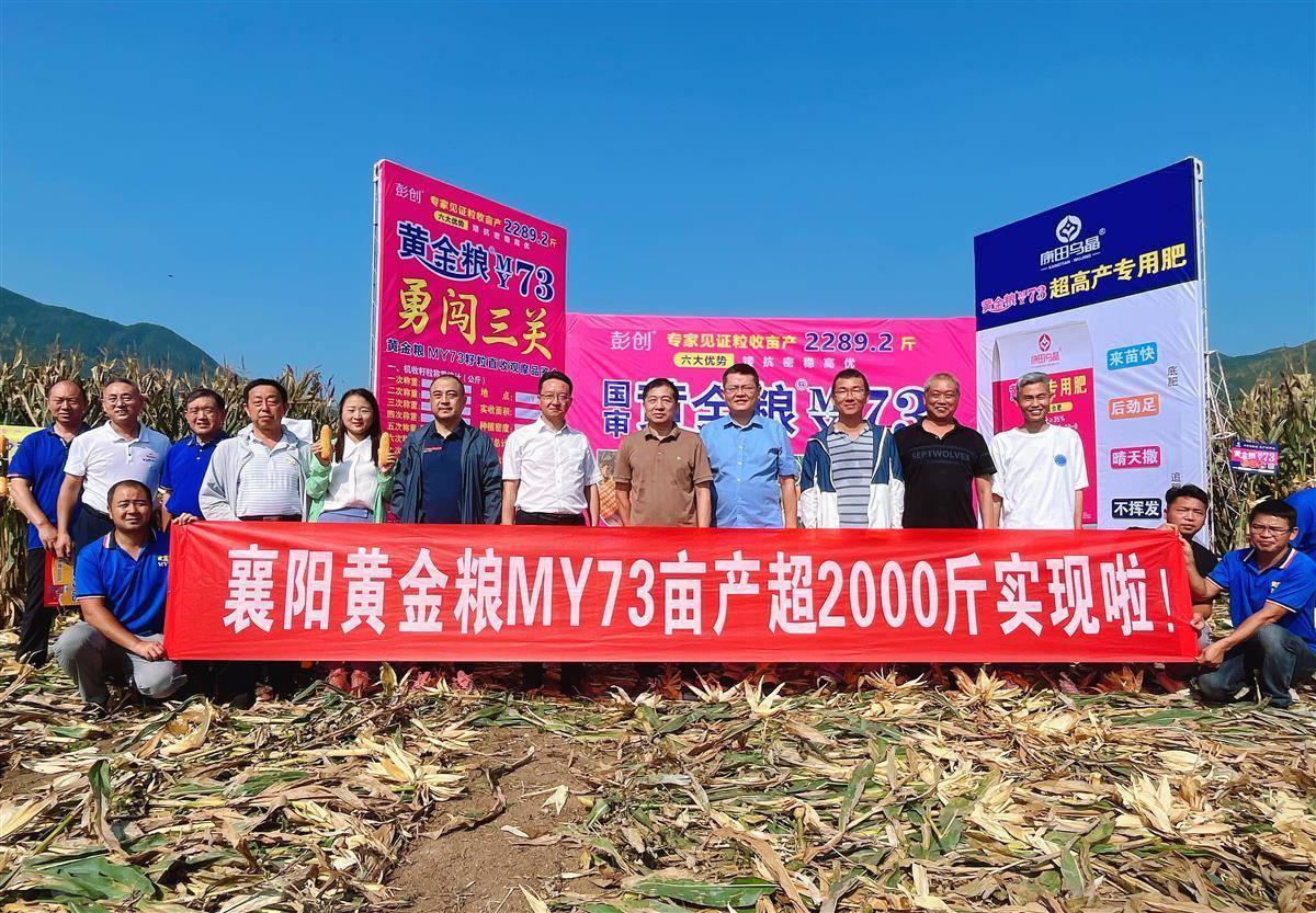 “黄金粮MY73”具有耐密、矮秆、抗性好、品质优、产量高的特点,去年在襄州区程河镇孙岗村首创麦玉“吨半粮”模式中示范成功,在樊城区太平店镇沈河村创下978.9公斤的春玉米高产纪录,今年纪录再次被刷新。襄阳市将其作为春夏播玉米主栽品种,今年推广面积达40万亩,2024年计划推广80万亩,2025年力争突破100万亩,通过良种良法配套,使襄阳市玉米亩均单产提高100公斤。