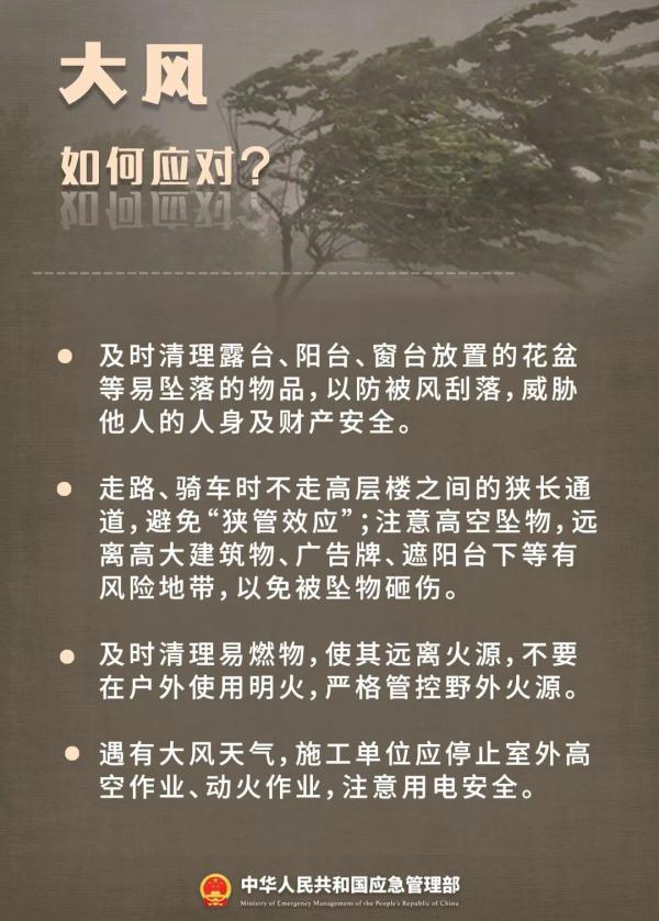 1、关注强对流天气影响。过程期间伴有短时暴雨、雷暴大风等强对流天气,政府及相关部门按照职责做好防雷、防风工作;高空、水上、田间等户外作业人员遇到强对流天气应立即停止作业;户外行人注意远离棚架广告牌等搭建物,尽量躲入有防雷设施的建筑物或者汽车内,避免雷雨时在大树、高耸孤立物下避雨、接打手机。