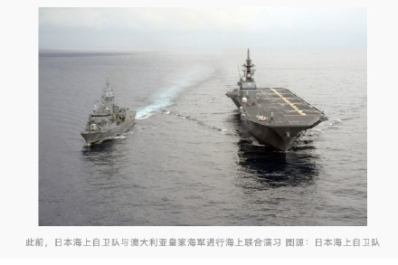 据路透社18日援引日本共同社消息,多位匿名官员透露,日本、美国、澳大利亚将于下周三(23日)在中国南海举行海军联合演习。对于一些国家在南海举行联合军演,中国国防部新闻发言人张晓刚曾表示,中方一贯主张,双多边安全合作要有利于地区和平稳定,而不应针对第三方或损害第三方利益。当前,东海、南海局势总体保持稳定,但个别域外国家为一己之私搅局滋事,搞军事挑衅,制造阵营对抗,升高地区紧张局势。地区国家应对此高度警惕,不要为他国火中取栗,避免损害自身利益。