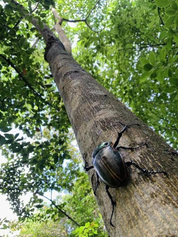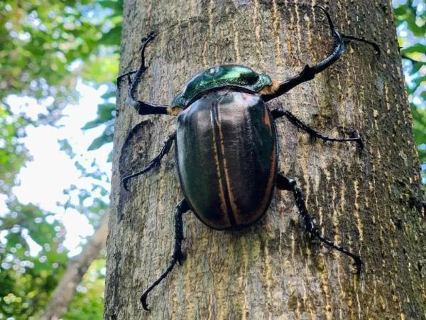 近日,一位家住大山中的市民在自家门口发现一只外形奇特、趋光性的巨型甲虫。出于好奇,他在网上查阅了这只巨型甲虫的资料,原来这是只国家二级保护动物——彩臂金龟,于是他马上联系韶关乐昌市林业局野生动物保护部门,对该彩臂金龟进行救助。