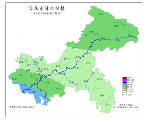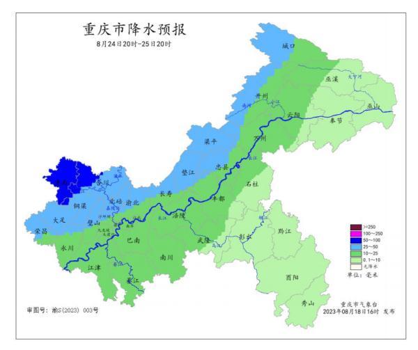 23日20时—24日20时全市降水预报图。重庆市气象台供图
