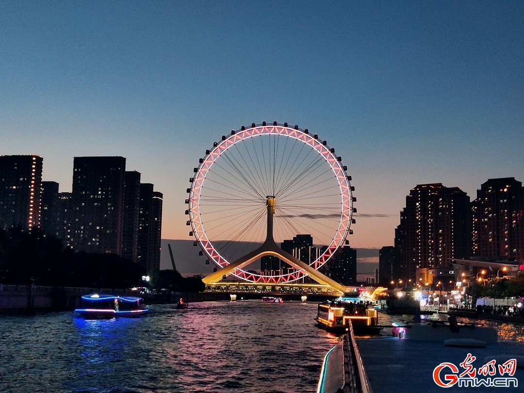 “九河下稍天津卫,三道浮桥两道关”。天津因水而生、依海而兴,穿城而过的海河记录着这座城市的发展脉搏。8月18日,记者随“走进区域看发展·中国式现代化的京津冀实践”网络主题调研采访活动乘坐游船,沿“海河最美一公里”观赏海河两岸夜晚城市景观,感受天津多元文化及创新消费带来的城市活力。