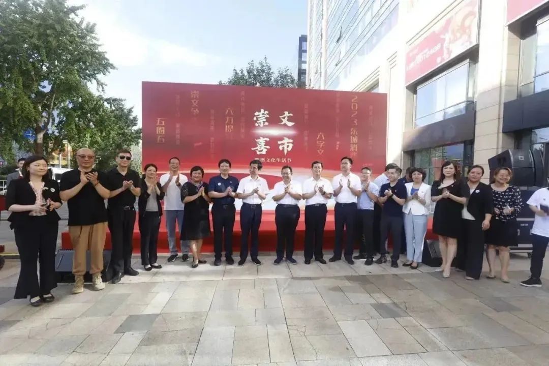 8月18日,2023“崇文喜市”啤酒文化生活节在崇文门商圈启动。本次活动由崇外街道和人铁文化创意产业发展(北京)有限公司共同主办,并联手推出“崇文喜市”消费品牌,打造崇文门商圈消费IP。区委书记孙新军,区委常委、组织部部长章建伟,区人大常委会副主任白京涛,副区长王佑明、崇外街道工委书记余海民、办事处主任李玺以及区相关部门、崇外街道、人铁文创、辖区企业领导出席活动。