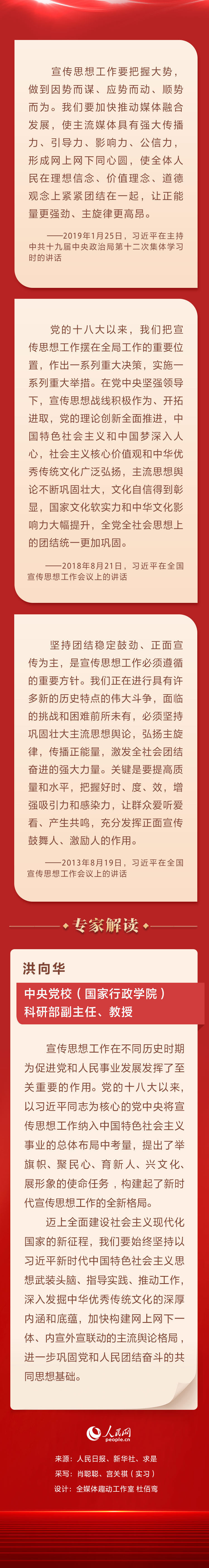 党的十八大以来,以习近平同志为核心的党中央从坚持和发展中国特色社会主义、实现中华民族伟大复兴中国梦的战略高度,系统规划和全面推进宣传思想文化工作。人民网带您重温习近平总书记重要讲话并邀请专家解读。