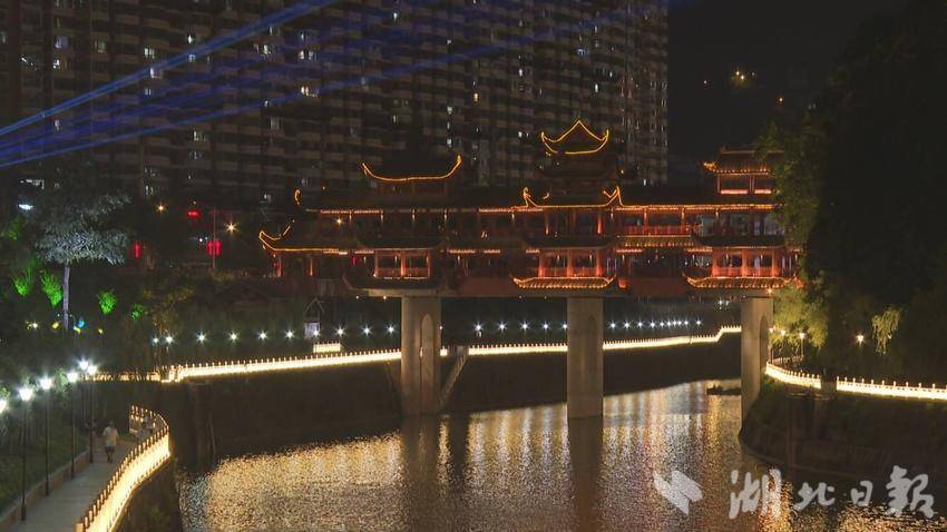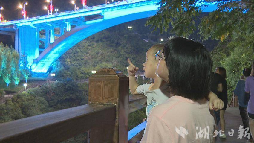 除了欣赏自然风景,留在鹤峰县城赏夜景成为许多游客新选择。夜幕降临,灯光璀璨美如画,近期的亮化工程的实施,让这座小山城焕然一新。游客们纷纷驻足打卡,在亲水走廊欣赏着高颜值的山城夜景。