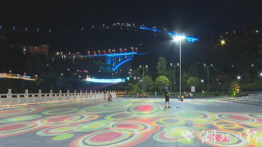 夜空之中,白鹤飞舞;绚丽吊桥,多彩动人;溇水河中,水帘飘动……霓虹闪烁、光影变幻,交织成美丽的小城画卷。鹤峰县夜景艺术照明提升工程项目负责人唐纯清介绍:“目前,我们已经建成了民族风情街、凤桥数字水帘、吊桥、心形沙滩、山体激光等景观工程,市民对此反响都很好,许多地方都成为了他们抖音打卡的地点。接下来,我们还将继续进行亮化提升,希望通过这一系列的打造,展现出我们鹤峰山城的魅力,吸引更多游客来到鹤峰。”