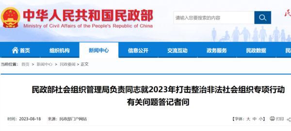 民政部公布2023年涉嫌非法社会组织名单(第一、二批)