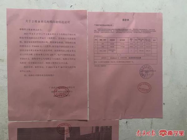 李先生告诉记者,由于电梯的钢丝绳均有不同的规格,必须找到电梯厂家购买或定制,小区所使用的电梯已经较为老旧,许多配件在南宁买不到,购买材料所需费用和维修费用均要评估计算并粘贴告示向业主反馈,诸多问题相加才导致了电梯问题直至18日下午仍未解决。