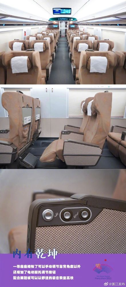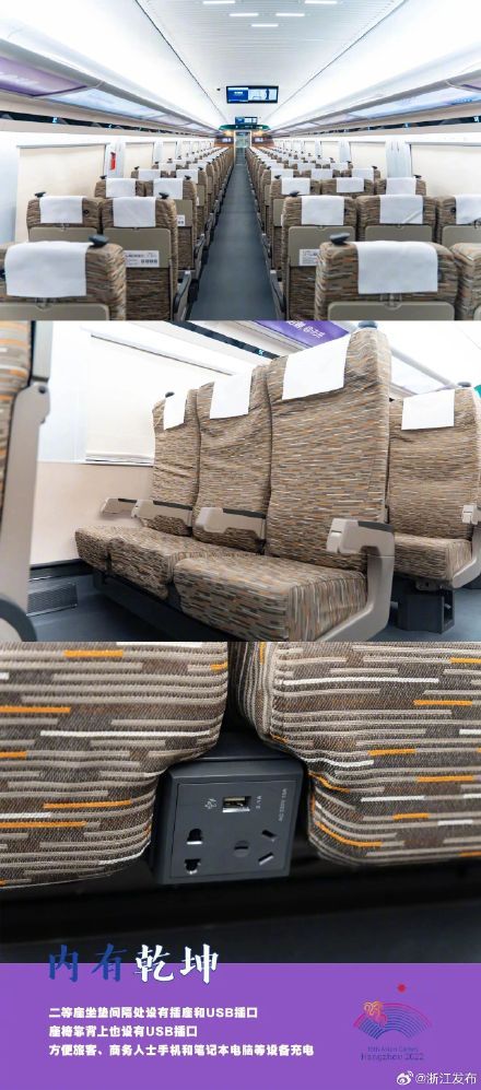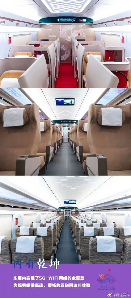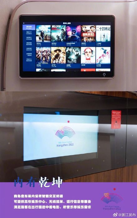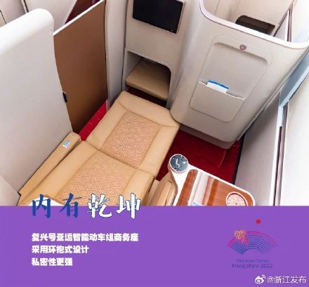 杭州第19届亚运会复兴号亚运智能动车组已经开启试乘体验,相信大家对身披“虹韵紫”的列车外观已经颇有了解。今天,一组内部大图,带你云体验,看看复兴号亚运智能动车组内部有什么不一样的地方。