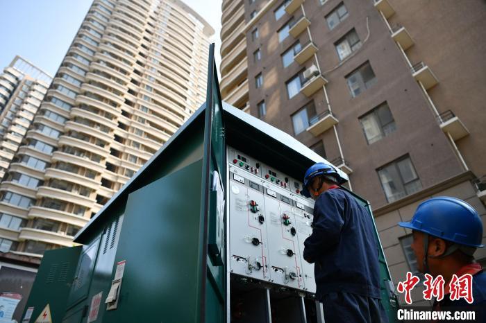 8月15日,电力工作人员正在位于河北省涿州市高新技术产业开发区的中胶人才家园小区检修电力设施。中新社记者 翟羽佳 摄