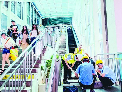 除了检查设备,检验人员还要求使用单位和维保单位对穿着长裙、洞洞鞋、拖鞋的游客做好提醒和风险防范措施,重点监控儿童较多的区域,防止儿童在长扶梯或自动人行道上打闹而发生事故,并协助维保单位完善电梯突发情况应急预案。