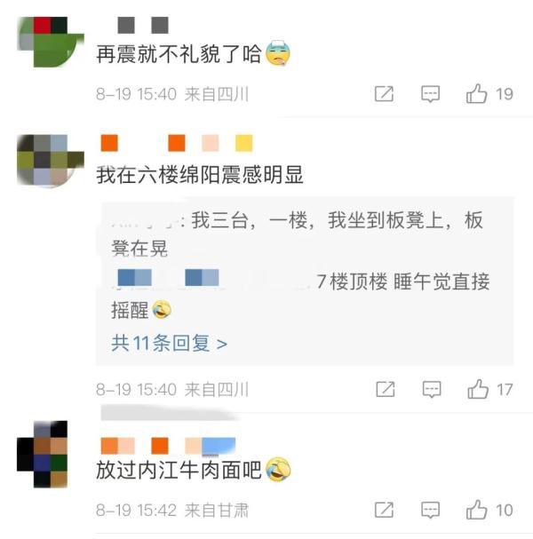 “最近怎么这么频繁”“再震就不礼貌了哈”“放过内江牛肉面吧”......