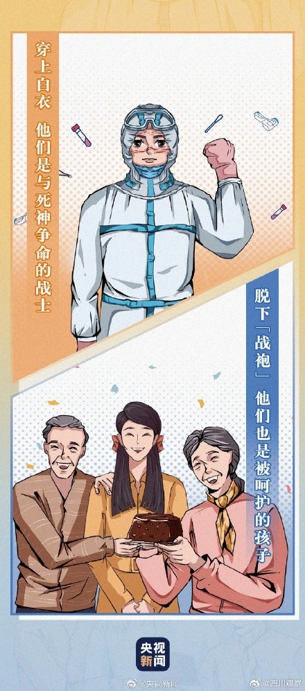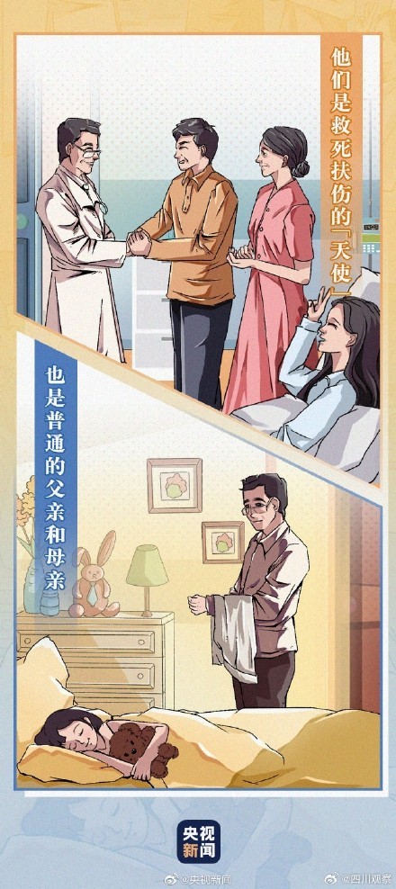 他们是救死扶伤的“天使”,也是父亲和母亲;他们是与死神争分夺秒的战士,也是被呵护的孩子。梦想拐了个弯当上了医生他们并非生而英勇,只是选择了无畏。 致敬医者仁心! (图源:央视新闻)