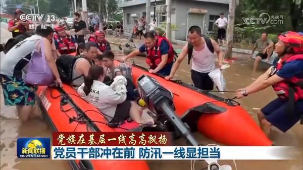 央视网消息(新闻联播):党员干部要冲在前,基层党组织要发挥作用,让人民群众感到有依靠。在这次华北东北地区防汛抗洪救灾工作中,广大党员干部全力保障人民群众生命财产安全,以实际行动诠释共产党人的初心使命。