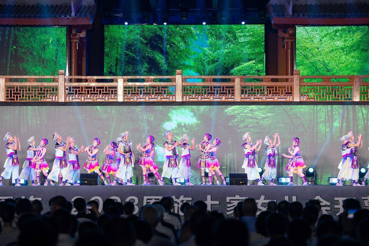 活动现场,《土家女儿列嘎查》《姐儿织锦花得花》《双探妹》等歌舞轮番上演,表达土家儿女对爱情的炽热向往和大胆追求,热情四溢的情景表演让2000余名现场观众为之沉醉,在一片喜庆祥和的氛围中共同庆祝恩施土家族苗族自治州成立40周年。