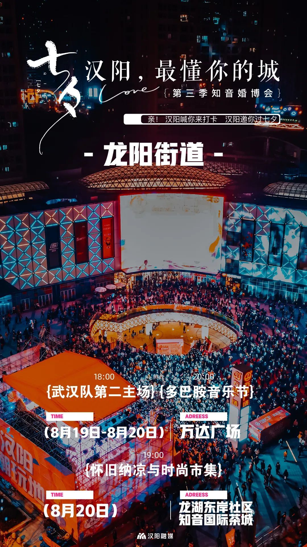 活动内容:汉阳造市集、婚恋市集、美食市集、婚车展示、古风市集等。现场邀请婚纱、婚礼堂、婚房、喜酒、珠宝等婚庆类企业现场摆展;联动区内美食夜经济街区,邀请美味网红商家出摊;联合恒信汽车集团、高合、智己等新能源汽车品牌,展示款式新颖、价格亲民的车辆;特别邀请叶开泰、黄鹤楼等汉阳造品牌现场进行展示展销。