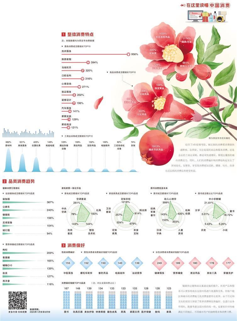 从趋势看,西安的新型消费日渐崛起,服务消费占比提升。今年上半年,西安旅游服务线上订单成交额增长超3倍。越来越多消费者选择将日常生活交给专业服务团队,家政保洁、洗衣、家居安装等服务成交额增速超过实物商品。在营养保健品持续热销的同时,体检、康养、心理咨询等健康服务受到西安市民青睐。