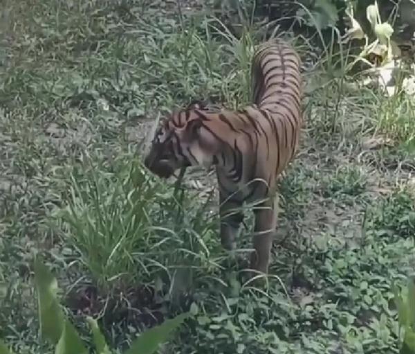 网上所传老虎饿得只能吃草 图源:视频截图