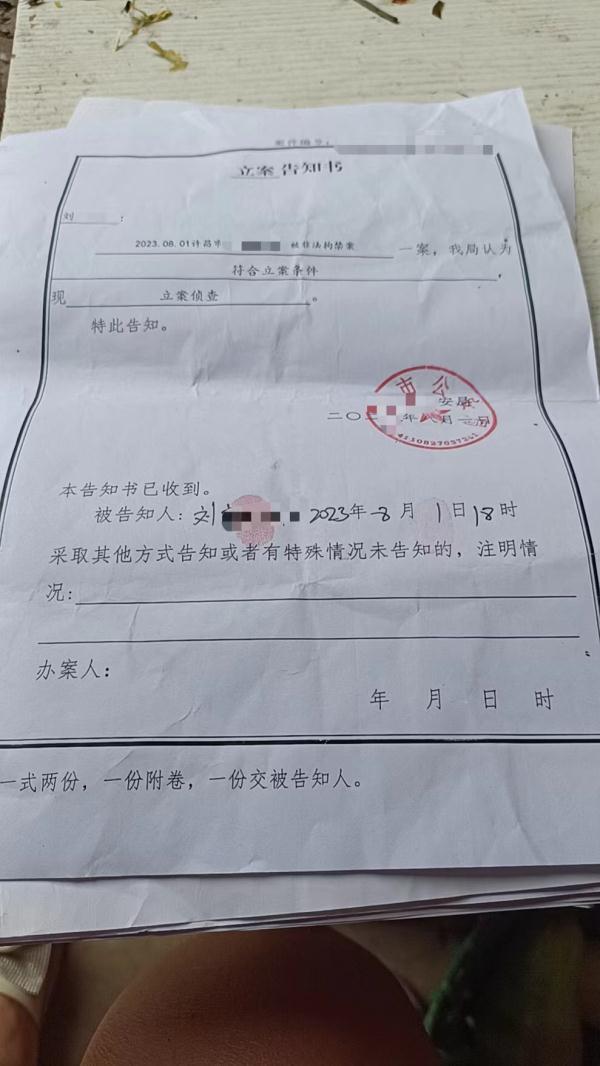 立案告知书 图:受访者提供