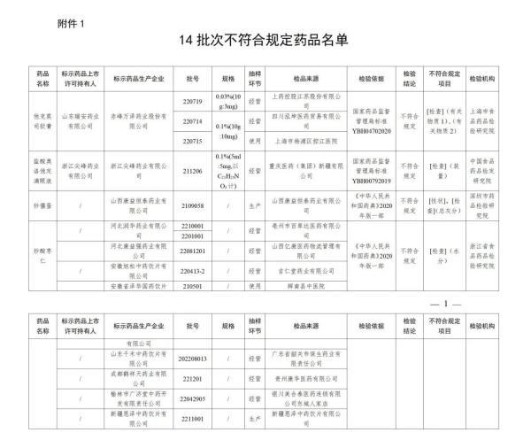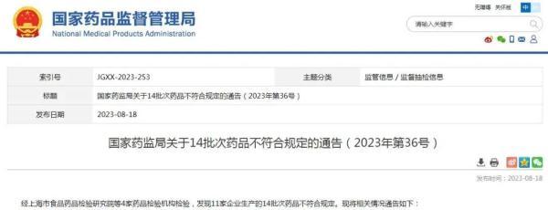 经上海市食品药品检验研究院等4家药品检验机构检验,发现11家企业生产的14批次药品不符合规定。现将相关情况通告如下: