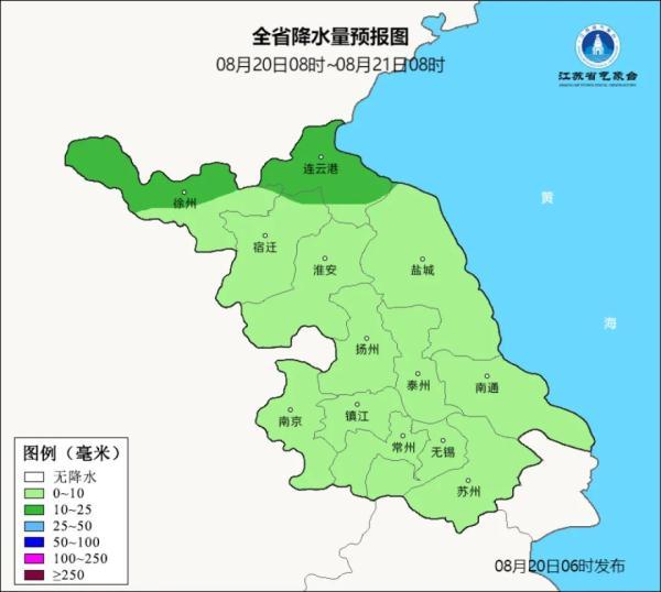8月20日08时至8月21日08时:全省多云,大部分地区有分散性阵雨或雷雨,其中淮北北部地区雨量中等。最高温度本省西北部地区34℃左右,其他地区32~33℃;最低温度淮北北部地区23℃左右,其他地区25~26℃。全省偏东风转偏南风,风力都是4级左右,有雷雨地区雷雨时短时阵风7-8级。