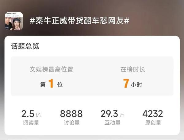 当天#秦牛正威带货翻车怼网友#