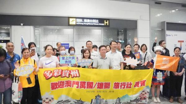 本次航班上共搭乘了澳门入黔的旅客共169人,其中澳门旅游团队70人。接下来他们将前往乌蒙大草原、织金洞、遵义会址、青岩古镇等地开启“多彩贵州”之旅。