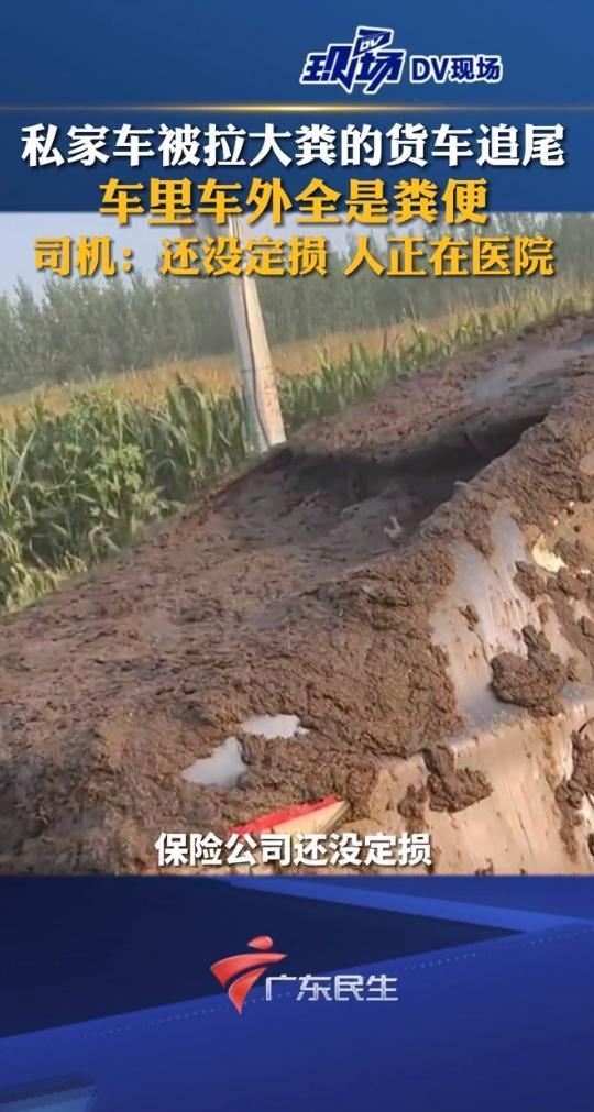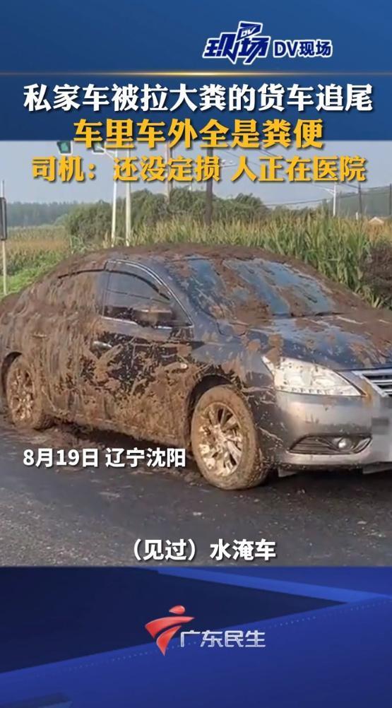 8月20日,据DV现场报道,8月19日辽宁沈阳一私家车等红绿灯时被拉动物粪便大货车追尾,结果动物粪便泼了私家车一整车。