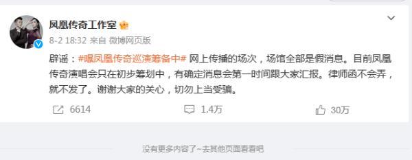 网友的评论显得有点着急了,“辟那么快干嘛???让我多想象一会儿”“20周年你不巡演你干嘛啊????”这大概是头一次有粉丝嫌工作室辟谣太快,然后猛然发现,凤凰传奇工作室的官微,有且只有这一条微博,“以为是为了辟谣刚注册的”,有网友说。