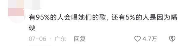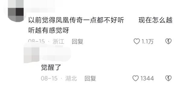 有人戏称:“有95%的人会唱凤凰传奇的歌,还有5%的人是因为嘴硬。”还有人表示,以前觉得凤凰传奇一点都不好听,现在越听越有感觉。另一位网友回复,这是“觉醒了”。