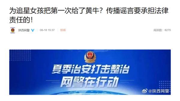 8月18日,“陕西网警巡查执法”公众号发布消息称,经调查核实,此消息纯系凭空杜撰。经查,该谣言编造者为一名高中在校学生,出于娱乐目的,编造虚假信息并在网上发布。西安警方依法对其进行批评教育并予以行政处罚。