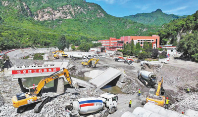 8月19日,北京建工机施集团在北京市房山区霞云岭乡进行清淤等工作。 马文晓摄(人民视觉) |