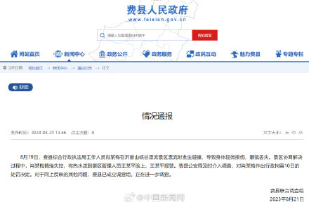 8月21日,费县联合调查组通报:8月19日,费县综合行政执法局工作人员肖某梅在沂蒙山峡谷漂流景区漂流时发生碰撞,导致身体轻微擦伤,眼镜丢失。景区协调解决过程中,肖某梅情绪失控,将热水泼到景区管理人员王某平脸上,王某平报警。费县公安局及时介入调查,对肖某梅作出行政拘留10日的处罚决定。对于网上反映的其他问题,费县已成立调查组,正在进一步调查。(费县联合调查组)
