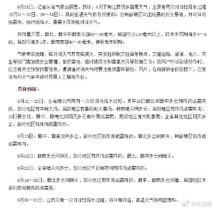 综上所述,由于降水影响,江西连日来的暑气逐渐缓解。