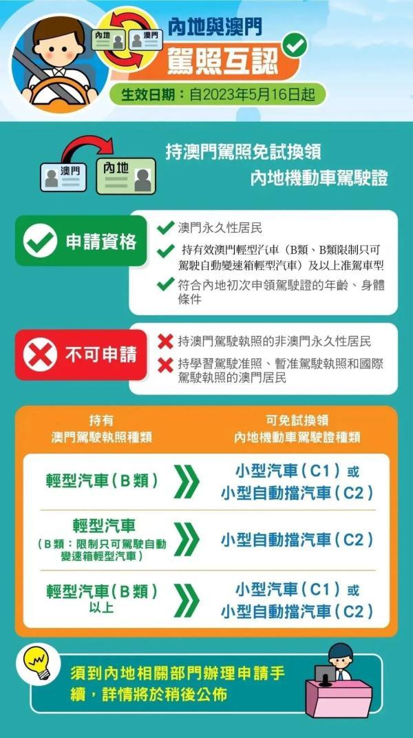 今年5月16日,公安部与澳门特别行政区政府签署的《内地与澳门关于互认换领机动车驾驶证的协议》正式生效,实现内地与澳门驾驶证免试互认换领,再次为粤港澳大湾区居民往来提供了更多的便利。
