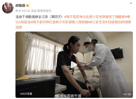近日,电影《我不是药神》中,白血病少年饰演者顾智国捐献骨髓的消息引发关注。顾智国说:“我演过白血病患者,知道这种病有多残酷,当我听说造血干细胞移植是治疗血液病的有效方法时,我便毫不犹豫地留下了血样,希望有一天能帮到他人。”去年年初,顾智国正式加入中华骨髓库。今年6月,他接得知自己的造血干细胞与一名白血病患者初配成功,当即表示同意捐献。