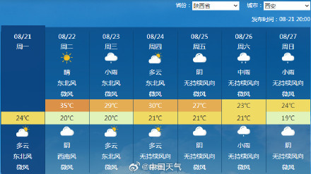 今后几天北方多地气温将明显下滑,西北、华北北部、东北多地最高气温会降到30℃以下,周末最高气温30℃线甚至会大幅南退至长江以南。比如陕西西安,今明天还是盛夏,之后在冷空气和降雨影响下,热意“冷却”,26日最高气温或降至23℃,体感上从“桑拿天”直接“入秋”,短袖变长袖!