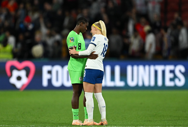 进球之后,尼日利亚队门将捂脸倒地,悲伤之情溢于言表,凯莉第一时间来到她身边,轻声安慰,并将她从地上拉起,柔情外溢。