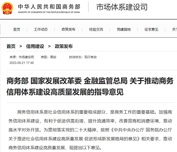 中国经济网北京8月22日讯(记者 张懿) 据商务部网站21日消息,商务部、国家发展改革委、国家金融监管总局等三部门联合发布《关于推动商务信用体系建设高质量发展的指导意见》(以下简称《指导意见》)。其中提到,合理增加对消费者购买汽车、家电、家居等产品的消费信贷支持,持续优化利率和费用水平。