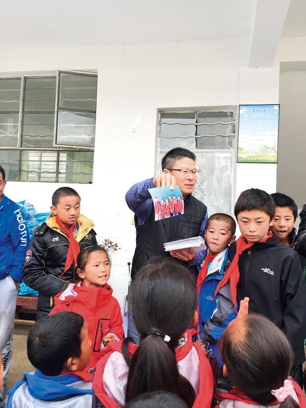 卞华伟每年都用相机记录山区学生们的成长。这是2017年在云南丽江玉龙县黄山镇南溪完小,卞华伟将冲洗好的照片送给孩子们受访者供图