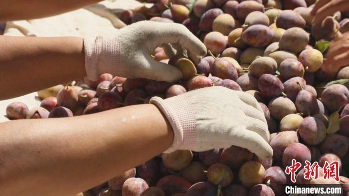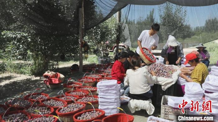 中新网乌鲁木齐8月22日电(戚亚平 张涛)秋高气爽,瓜果飘香,新疆南部各地各种时令水果纷纷进入采摘旺季,新疆生产建设兵团第一师阿拉尔市13团幸福镇22连种植的西梅也迎来采摘季。