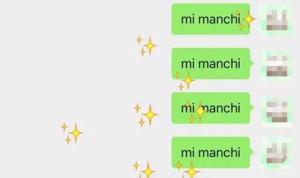 发送“mi manchi”,则弹出许多亲嘴的可爱表情。