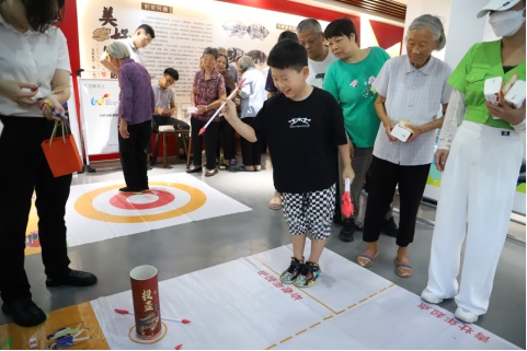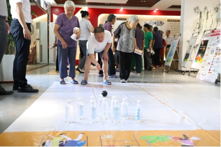 趣味运动会设置了仿真保龄球、投壶、原地踏步等多个比赛项目,选手多以村居老年人为主。赛场上老年朋友们兴致高昂,各显身手。赛场外观众为选手加油打气,传授心得。“慢一点,看准再投。”最为热闹的比赛项目当属投壶。男女老少跃跃欲试,信心满满。准备、瞄准、扔箭,动作一气呵成。活动现场笑声不断,掌声迭起,充满了欢乐祥和的氛围。