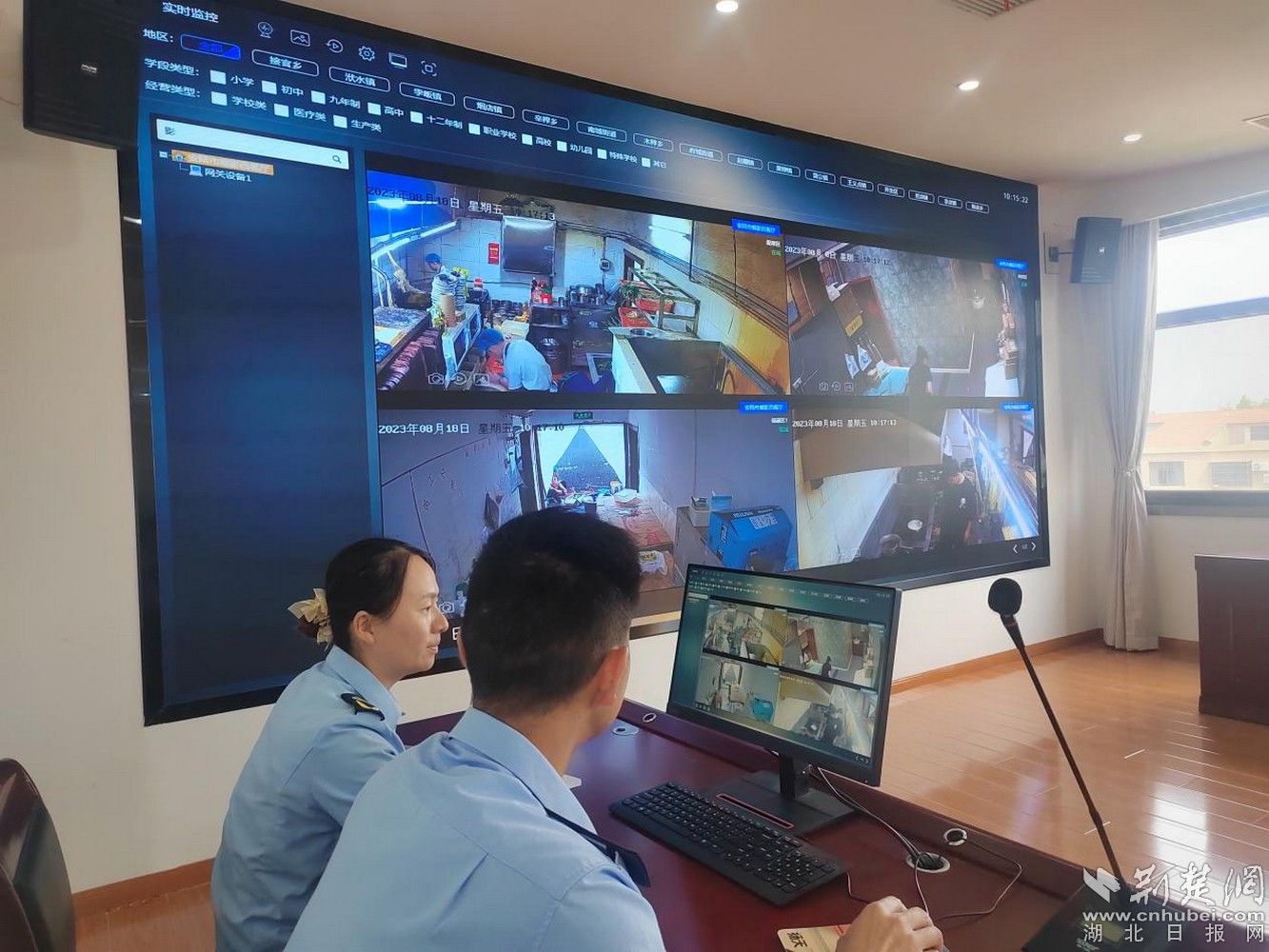 二是建设智慧监管系统。安陆市委市政府争资600万元建设食品药品远程智慧监管系统,对学校幼儿园食堂、社会餐饮、药店、食品生产经营企业等320家单位进行远程监管,通过摄像机及传感器等设备进行AI分析,打造全链条、实时、动态、闭环式联动的食品安全管理机制,实现全市154家学校(幼儿园)食堂“互联网+明厨亮灶”全覆盖,并与省局“三网一中心”信息化系统成功对接。