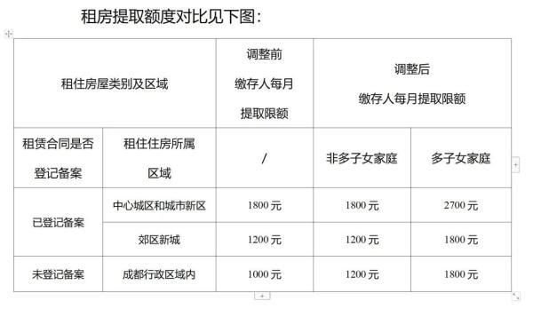 在支持租住住房提取方面,《通知》显示,缴存人租住住房为未登记备案的,每月限额由1000元调整为1200元,每年累计提取金额不超过1.44万元。多子女家庭租房提取额度在同期提取政策规定的额度基础上,再上浮50%。