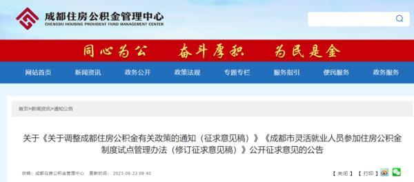 8月22日,成都住房公积金管理中心发布《关于调整成都住房公积金有关政策的通知(征求意见稿)》(以下简称《通知》),向社会公众公开征求意见。