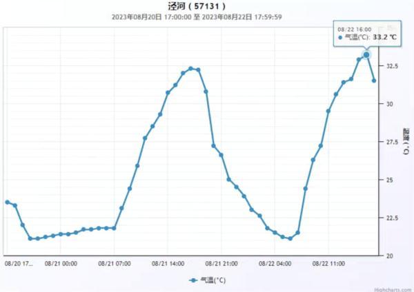 泾河国家站最高气温在33.2℃
