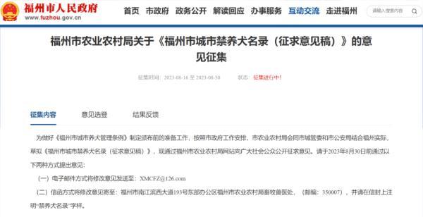 《福州市城市养犬管理条例》正式发布实施后,禁养犬名录向社会发布之日起施行,如有调整则重新向社会公布。