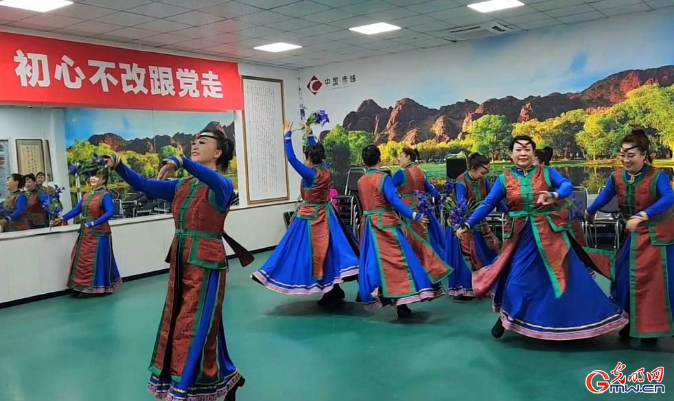 光明网讯(见习记者 王蕾)8月21日,“石榴花开 籽籽同心”网络主题活动内蒙古站采访团走进赤峰市松山区兴安街道临潢家园社区,走到社区门口,记者远远就听到一阵极具民族特色的悦耳歌声,原来,是乌兰牧骑小分队正在排练厅排演民族歌舞节目。